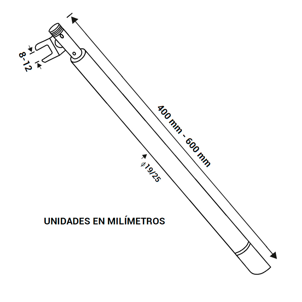 - Longitud Ajustable: Diseño telescópico que permite una extensión desde 400 mm hasta 600 mm, adaptándose perfectamente a diversos espacios.