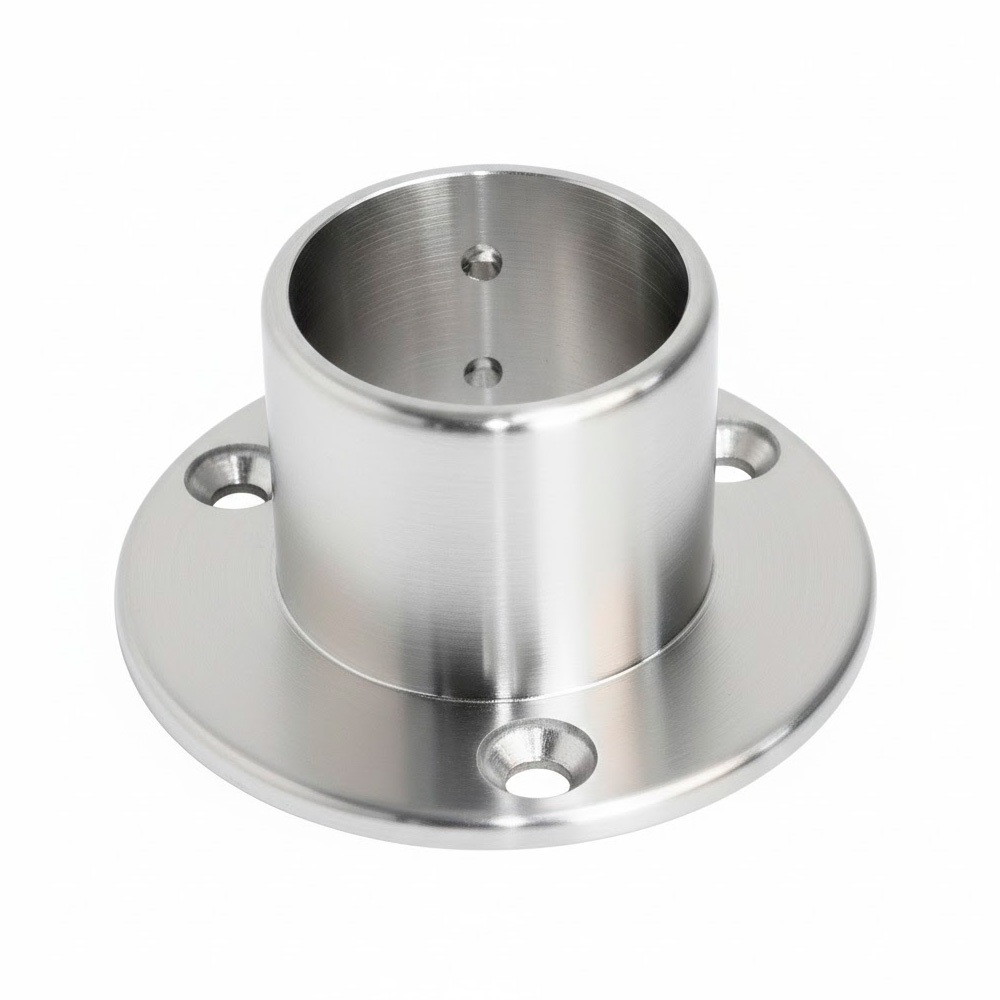 Soporte de alta resistencia diseñado para la fijación firme de postes de 2 pulgadas en pisos o paredes. Fabricada en acero inoxidable de primera calidad, garantiza durabilidad y un acabado estético impecable para sistemas de pasamanos y barandillas contemporáneas.
