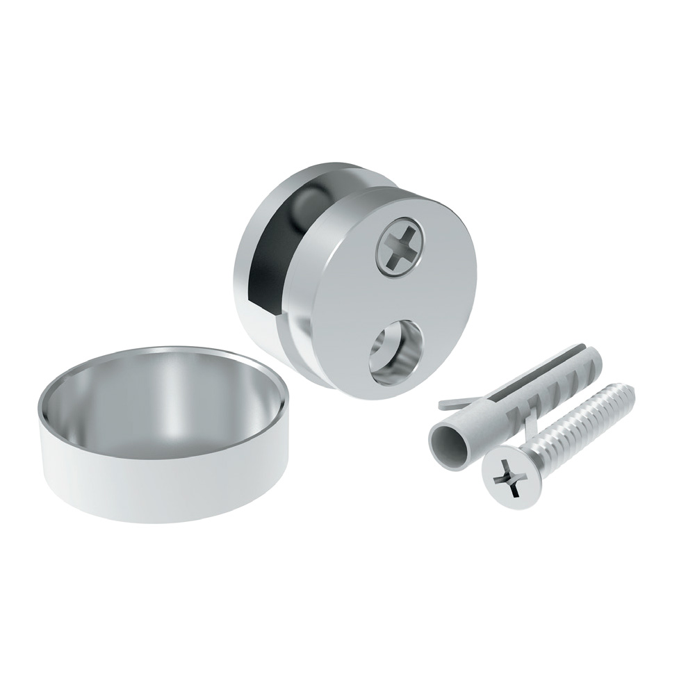 Conector para vidrios ó espejos. No se necesita hacer barreno en el vidrio, producto fácil de instalar. *Incluye tapa para cubrir el herraje. Peso Máximo 25kg por par Espesor Para cristal de 3 a 6mm de espesor