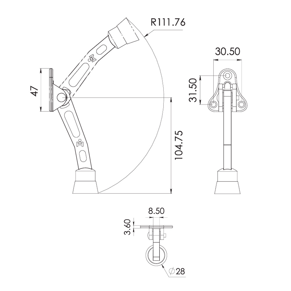 Fijapuerta pata de chiva para abatible. *Incluye tornillería.