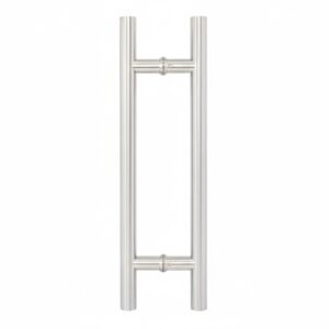 Esta jaladera de diseño tubular en forma de “H” es una pieza de herraje arquitectónico de alta gama, ideal para puertas de entrada principal o comercial (madera, vidrio o metal).