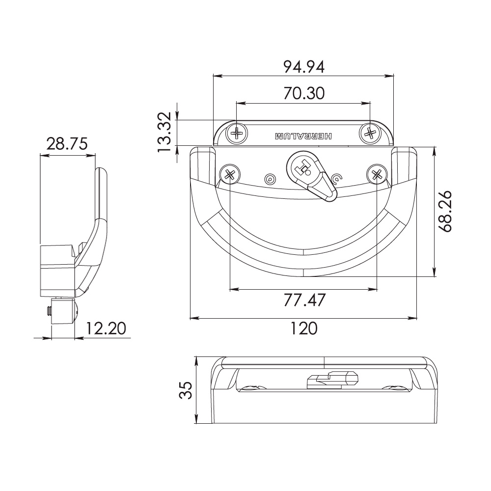 Jaladera La Brecha de 12cm, para línea corrediza y tradicional Eurovent. Con seguro abierto y cerrado. *Incluye tornillería.
