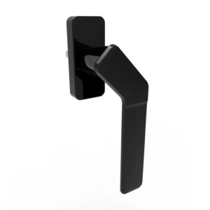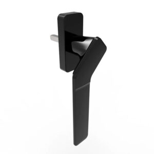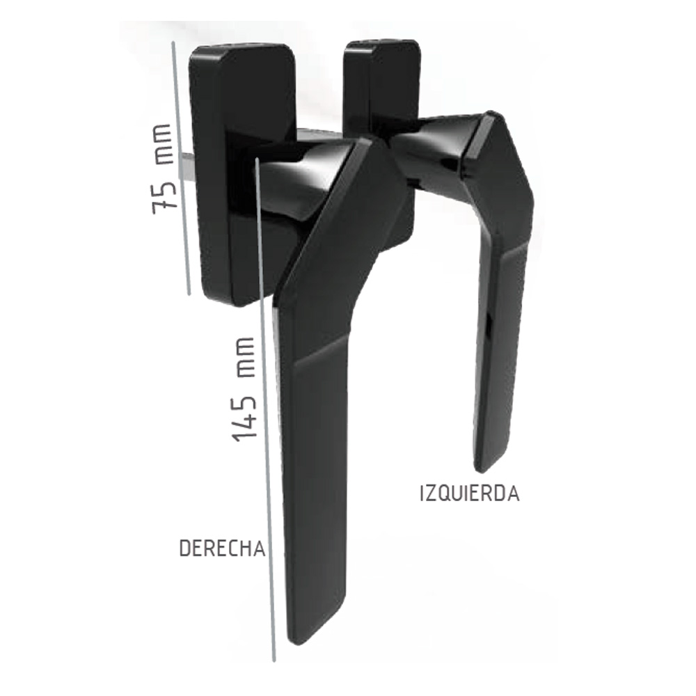 Manilla derecha o izquierda de diseño minimalista con mango acodado de 150 mm para puertas corredizas de dos hojas con cierre al centro tipo “oxxo”, “xo” y esquinas en 45°.
