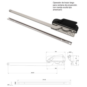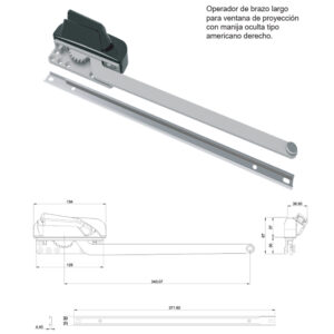 Mejora la funcionalidad de tus ventanas con este operador de brazo largo diseñado para sistemas de proyección tipo americano. Su mecanismo de manija oculta ofrece un diseño limpio y ergonómico que optimiza el espacio y la estética del perfil.