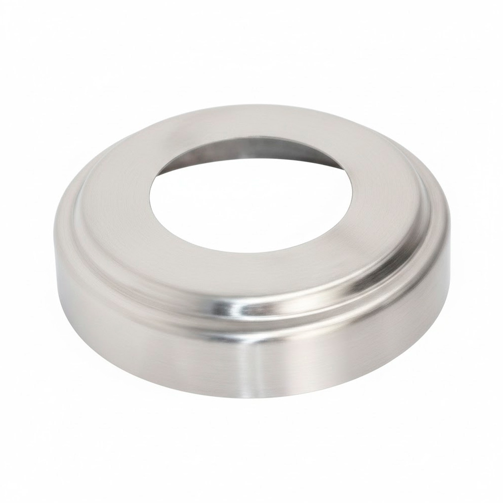Esta tapa oculta los herrajes y tornillos de fijación en la base del poste, proporcionando una transición limpia y estética entre el barandal y el piso. Fabricada en acero inoxidable de alta resistencia con acabado satinado.
